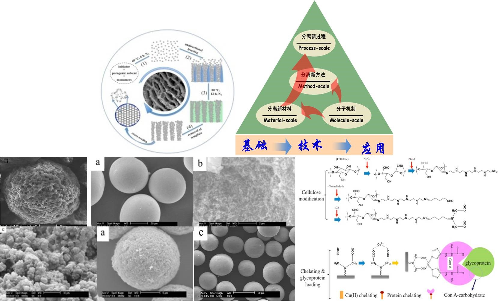 以木质纤维素、琼脂糖等天然高分子为研究对象,研究多糖基功能材料开发及其高效化的基础理论与应用技术,重点涉及材料结构调控、表面修饰及其构校关系研究。