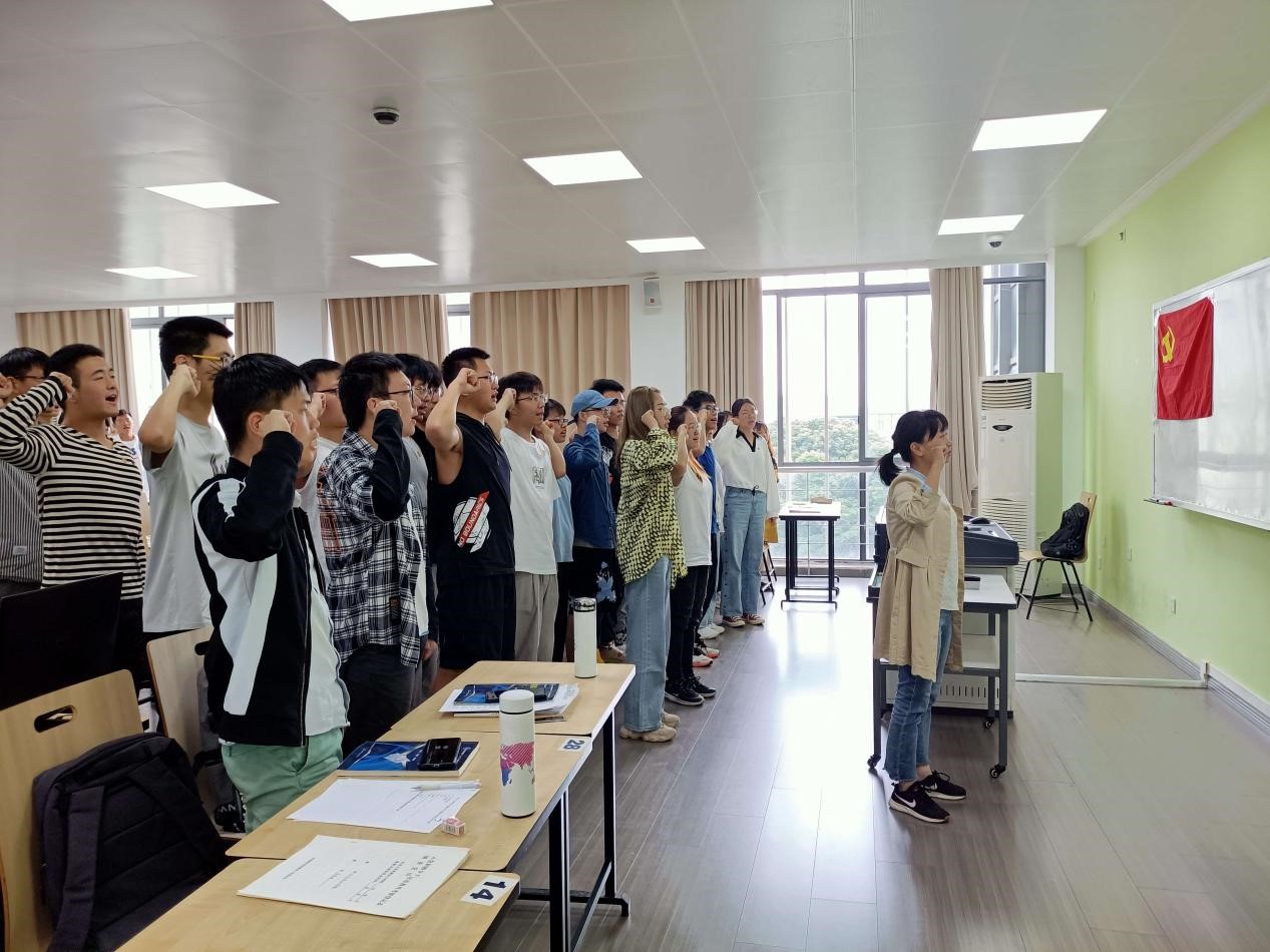 经过党支部严格考察和培养,有二十三名入党积极分子列为发展对象。支部严格按照党员发展程序,首先由二十三位同志依次上台做自我介绍并讲述入党动机以及需要向党组织说明的问题,随后入党介绍人分别介绍发展对象的现实表现,到会其他成员发表意见。党支部大会经过讨论和无记名投票表决后一致同意谭开元、王浩全等二十三位同志的入党申请。最后集体宣誓,二十三位同学光荣地成为中国共产党预备党员。
