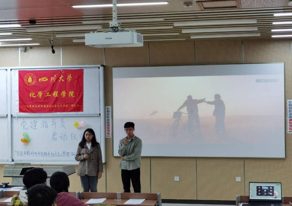 上午10点,启动仪式正式开始。由于疫情原因,雷金凤老师和部分党建指导员未能到现场,在线上参加此次活动。首先由指导老师雷金凤介绍了党建指导员的设立目的与工作职责,让大家对党建指导员有了初步认识,并鼓励大家与党建指导员进行交流。之后2021级党建指导员张婷婷作为代表发言,分享了担任一年党建指导员的心得和体会,同时也分享了一些工作经验,帮助新一届指导员们更好的开展工作。随后由党员服务中心干事带来了精彩的朗诵和歌唱表演,现场气氛更加活跃。最后主持人公布了2022级党建指导员名单,党建指导员签署任职合同并与团支书就班级情况和后续活动的开展进行了热切交流。最后各班团支书与党建指导员上台合影留念,此次党建指导员活动启动仪式圆满结束。