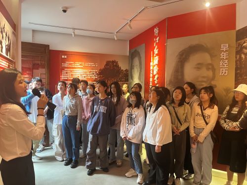 江姐纪念馆由江姐事迹展厅、江姐宿舍复原展厅、川大英烈事迹展厅以及景观院落四个部分组成,跟随着讲解志愿者的脚步,支部成员们被带回到江姐曾经奋斗过的时代。展厅从江姐的家庭、求学和入党经历作为切入点,着重讲述江姐在川大的学习和革命过程,深刻描绘了一个伟大的无产阶级战士形象。整个参观过程,支部成员们被以川大校友江竹筠为代表的革命先烈们的英勇事迹深深震撼,不断感受到这些共产党员们坚贞不屈的革命气节和纯粹理想的革命情怀。