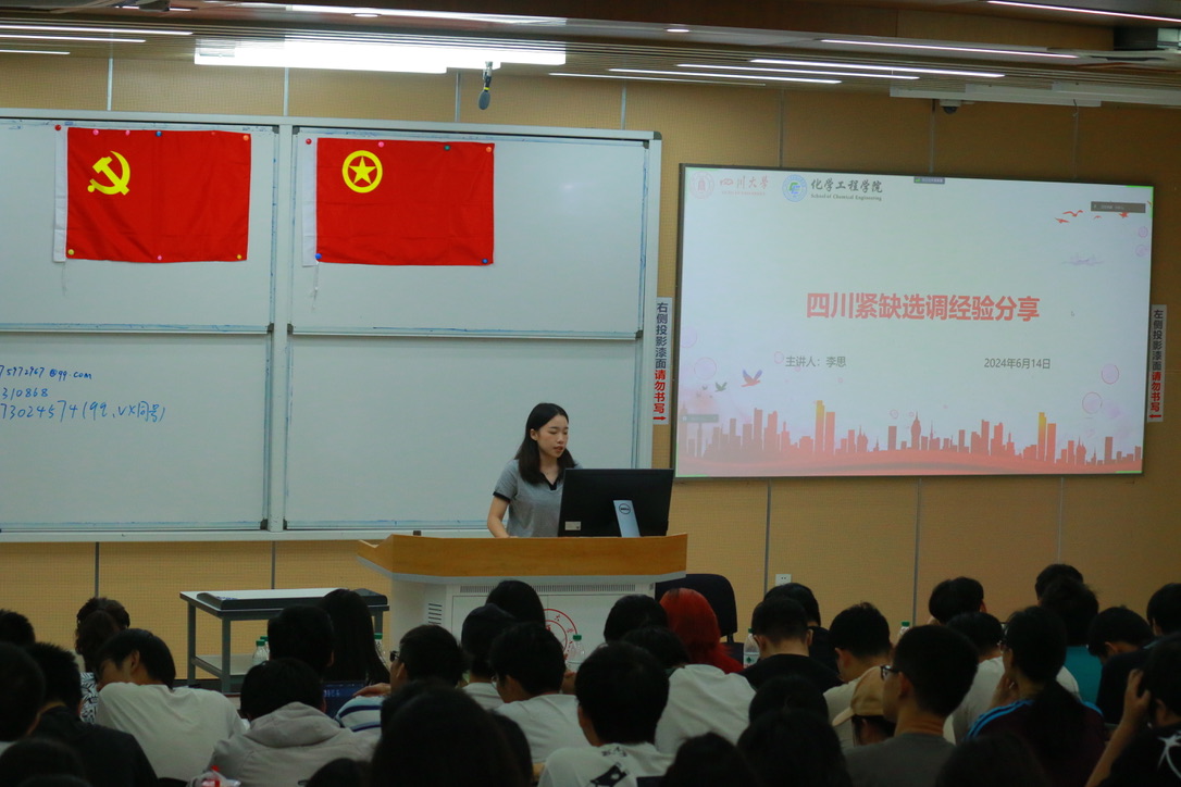 团委和本科社区党支部联合主办的“就业大讲堂——就业去向与规划”专题讲座在江安校区综合楼C406成功举办。本次活动特别邀请了2021级研究生任俊宇和2020级本科生李思为2025届本科生分别进行就业求职和选调生考试经验分享。2021级本科生辅导员李珍珍老师、付率老师和2021级全体本科生参加了本次活动。