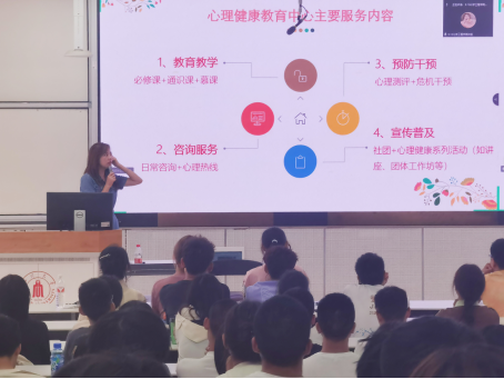 讲座伊始,罗晓老师首先介绍了心理健康教育中心的主要服务内容,包括各类课程教育教学、日常咨询和心理热线服务、心理测评和危机干预、开展社团及心理健康系列宣传普及活动等,提醒同学们遇到心理困惑要及时寻求帮助。