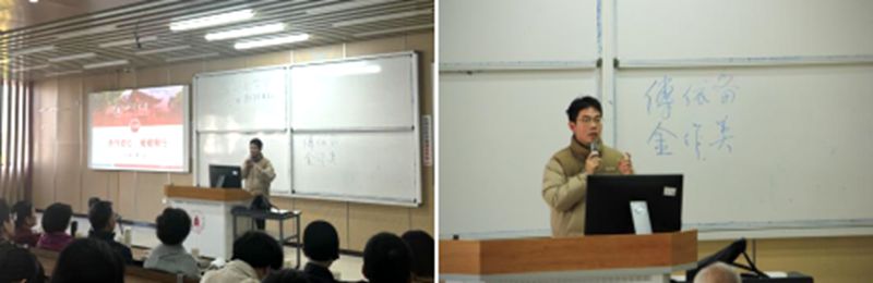 讲堂伊始,卫永祉老师首先介绍了杰出校友——中国工程院院士傅依备,讲述了傅院士为我国核事业发展做出的伟大贡献,95岁高龄的傅院士仍心系国家科技发展,每日读书看报,是青年学子们矢志奋斗的方向。卫老师接着讲述了校友金作美老师参加革命和致力化工行业发展的故事,体现了金老师不畏艰辛、一心为国的奋斗精神。卫老师以“学田无穷岁,只在勤耕耘”勉励同学们继承先辈荣光,将个人发展融入到国家的需要之中。