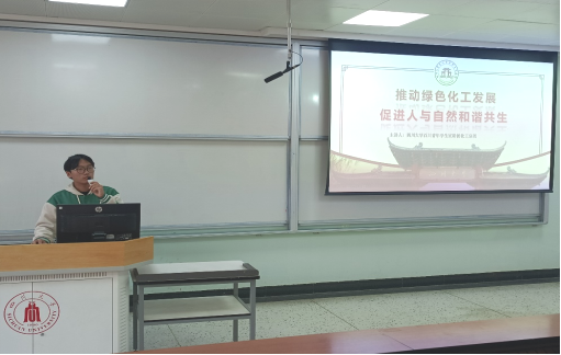 分团于2024年11月29日在江安一教B103开展 “推动绿色化工发展,促进人与自然和谐共生”的主题宣讲。此次活动旨在激发化工学子对绿色化工技术的探索与实践,为化工行业向绿色低碳转型贡献力量,并强化服务社会、促进人与自然和谐共生的责任感与使命感。