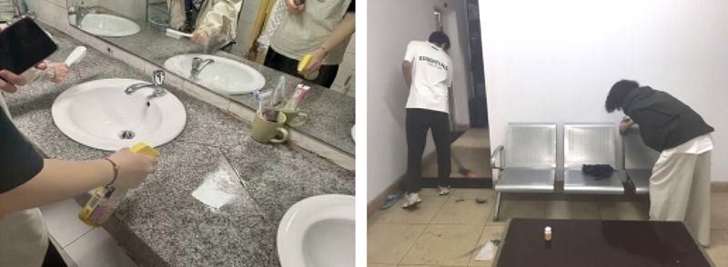 师生们清理了西园三舍“一站式”学生社区、清扫了社区院落及楼道的垃圾与杂物,规范了垃圾桶的摆放,清洁了学生活动室的地面、桌椅等。此外,同学们带上清洁工具前往第一基础实验楼,清扫了落叶和垃圾,提升整体环境。