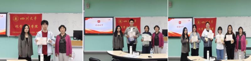选手表演结束后,评委们根据故事内容、现场演绎等综合表现评选了获奖作品,袁玲和徐建勇老师共同为获奖同学颁奖并合影留念。