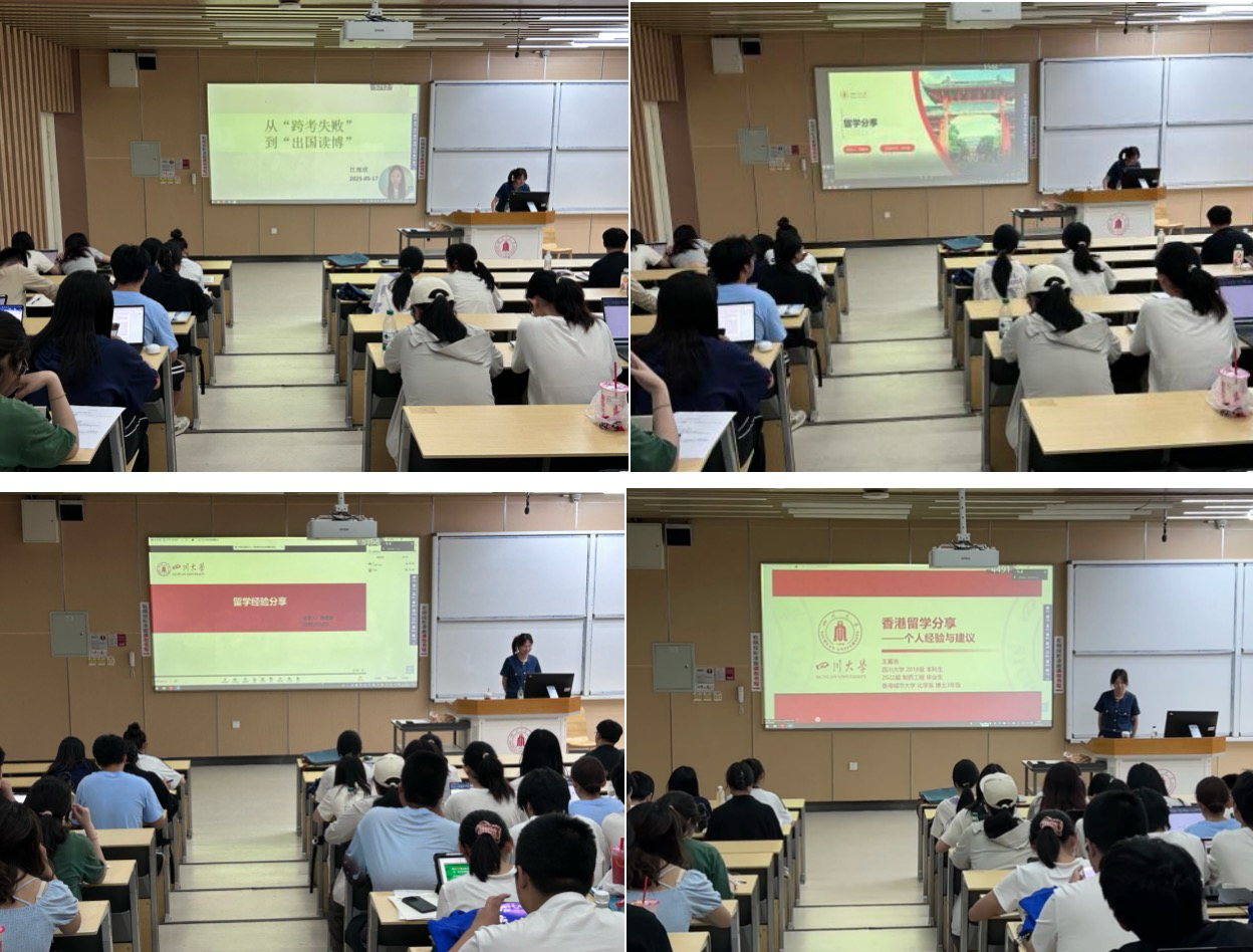 朋辈经验分享会于江安校区综合楼C座303教室顺利举行。本次分享会由李忆雯老师主持,邀请到四位就读于新加坡国立大学、香港城市大学、帝国理工大学、苏黎世联邦理工学院的化工优秀毕业生,以线上腾讯会议的方式,为2022级学子分享从留学申请到就读的宝贵经验。