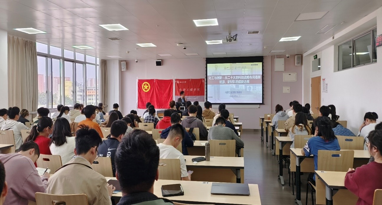 郭孝东院长开展了题为《化工与创新--从二十大的科技战略布局看新能源、新材料的最新进展》的学术讲座。讲座会场选址在AV研究所