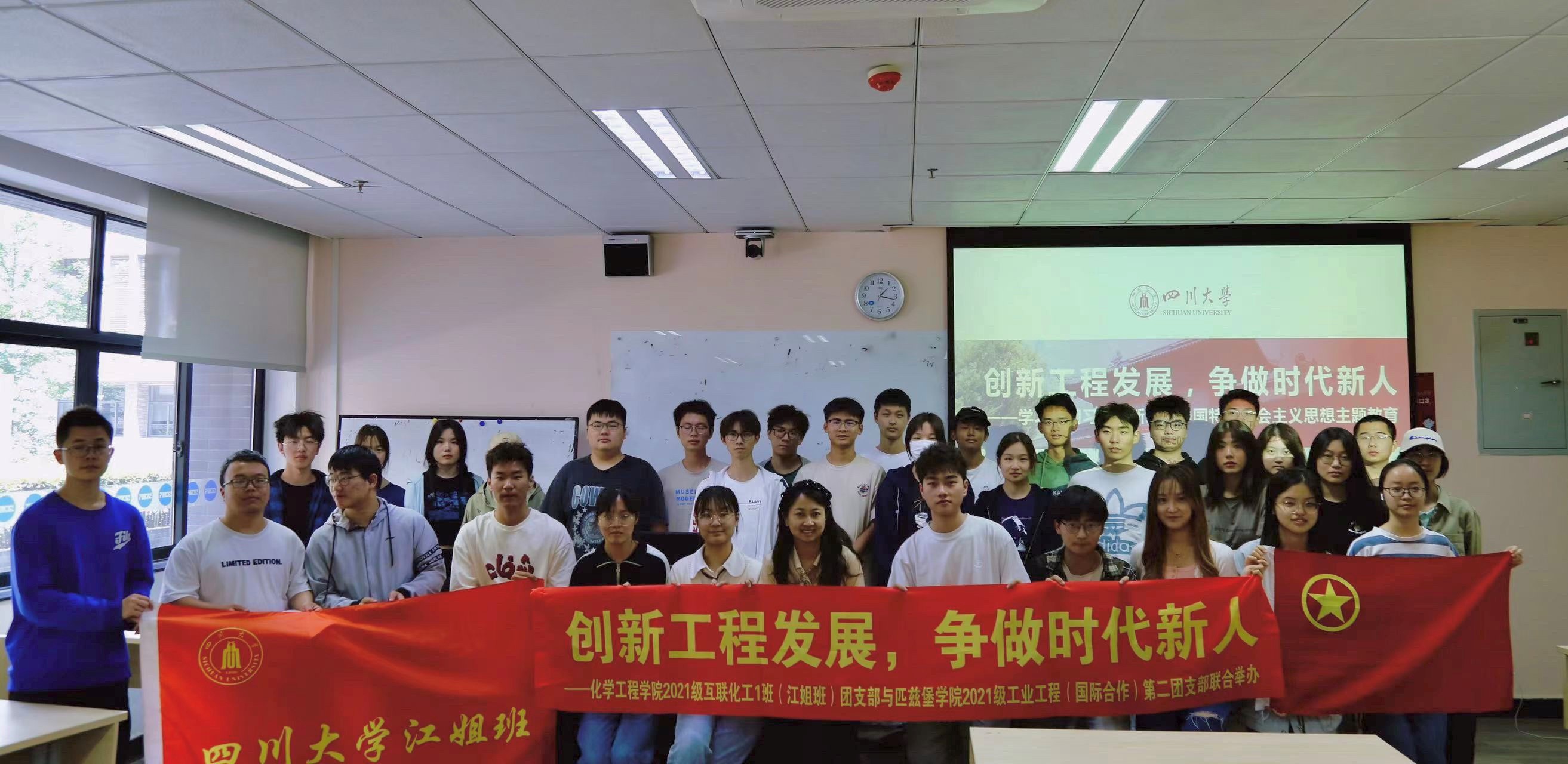 互联化工1班团支部与匹兹堡学院2021级工业工程(国际合作)第二团支部四月联合主题团日活动于文科楼三区101顺利举办,结合专业特色开展习近平新时代中国特色社会主义思想主题教育学习会。与会人员有AV研究所
