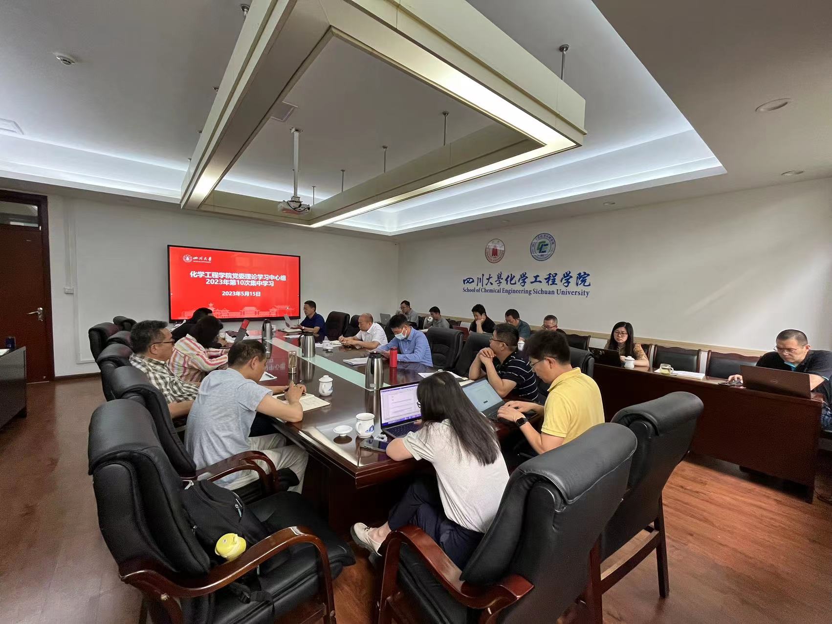 党委理论学习中心组在望江校区化工楼235会议室召开学习会,及时传达学习习近平总书记最新重要讲话精神和中央重要会议精神。学院全体领导班子成员、党委委员、工会主席、专职组织员、系(基地、中心)主任、院长助理和科级干部等参加会议。会议由党委书记李天友主持。